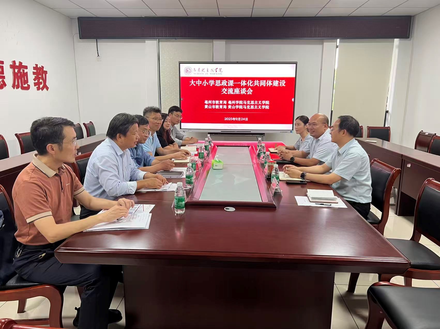 9月24日下午,亳州市教育局四级调研员、机关党委副书记杨超杰,亳州学院tyc7111cc太阳成集团党总支书记王振华一行4人来我院开展大中小学思政课一体化共同体建设交流座谈会。黄山市教育工委委员、市教育局副局长谢其正,市教科院政治教研员崔蓓莉、我院院长刘芳正、党总支副书记(主持工作)廖荣军及教师代表参加会议。会议由谢其正主持。